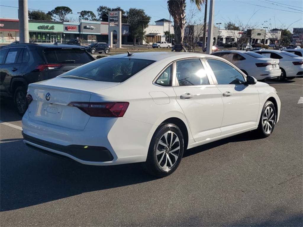 Step into the 2024 Volkswagen Jetta S, a used vehicle that offers a blend of sophistication and dynamic performance tailored for the discerning driver. The Jetta's sleek Pure White exterior is complemented by its turbocharged 4-cylinder engine, delivering a spirited drive with its 8-speed automatic transmission with Tiptronic. This compact sedan is engineered for those who appreciate precision and control, featuring front-wheel drive and a brake-actuated limited-slip differential for enhanced handling.