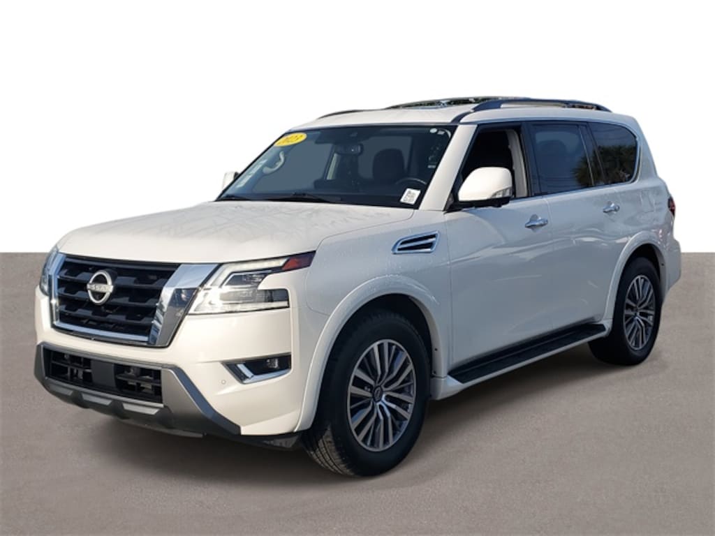 Discover the epitome of luxury and performance with the 2023 Nissan Armada SL, a used SUV that redefines driving pleasure. Beneath its Aspen White Tricoat exterior, the Armada houses a robust 8-cylinder engine paired with a 7-speed automatic transmission, delivering an exhilarating drive with rear-wheel drive precision. Safety is paramount, with features such as Blind Spot Monitor, Front Collision Mitigation, and Lane Keeping Assist ensuring peace of mind on every adventure. Enjoy unparalleled comfort with leather seats, heated front seats, and a power-adjustable driver's seat with memory settings. The third-row seating and power liftgate make it perfect for family outings or spontaneous road trips. Stay connected with the advanced navigation system, Bluetooth connectivity, and a premium sound system, all enhanced by smart device integration and a WiFi hotspot. The Armada's exterior is as functional as it is stylish, featuring running boards, a sun/moonroof, and a rear spoiler. With adaptive cruise control and a suite of driver-assist technologies, the 2023 Nissan Armada SL is not just a vehicle; it's your ultimate travel companion.
