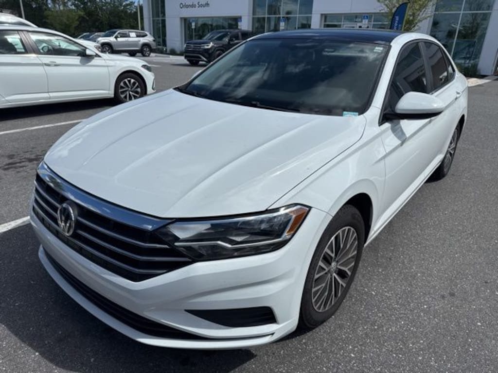 The exterior of this Jetta is adorned in a timeless White color, complemented by a host of premium features. Heated door mirrors, a power moonroof, and 16-inch 2-Tone Machined Alloy wheels add a touch of elegance and sophistication to the design.